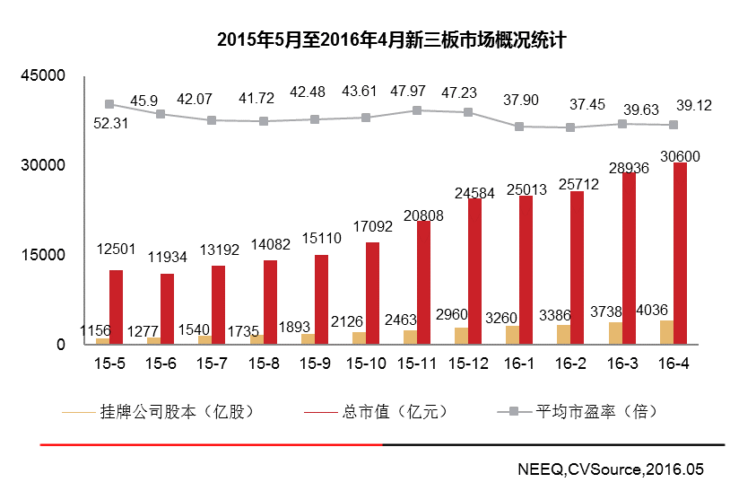 图1 2015年5月至2016年4月新三板市场概况统计
