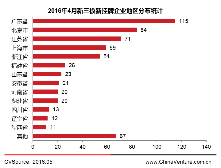 图2 2016年4月新三板新挂牌企业地区分布统计