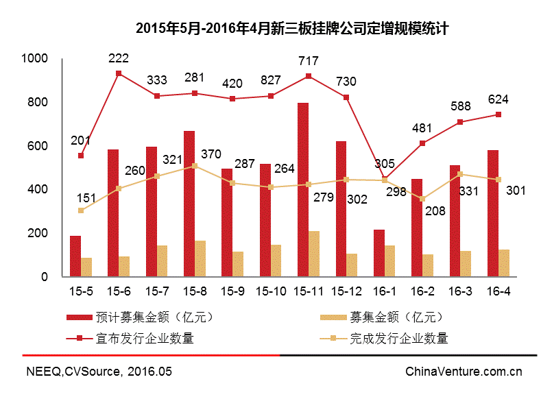 图4 2015年5月至2016年4月年新三板挂牌公司定增规模统计
