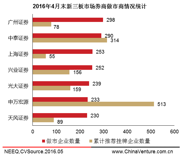 图6 2016年4月末新三板市场券商做市商情况统计