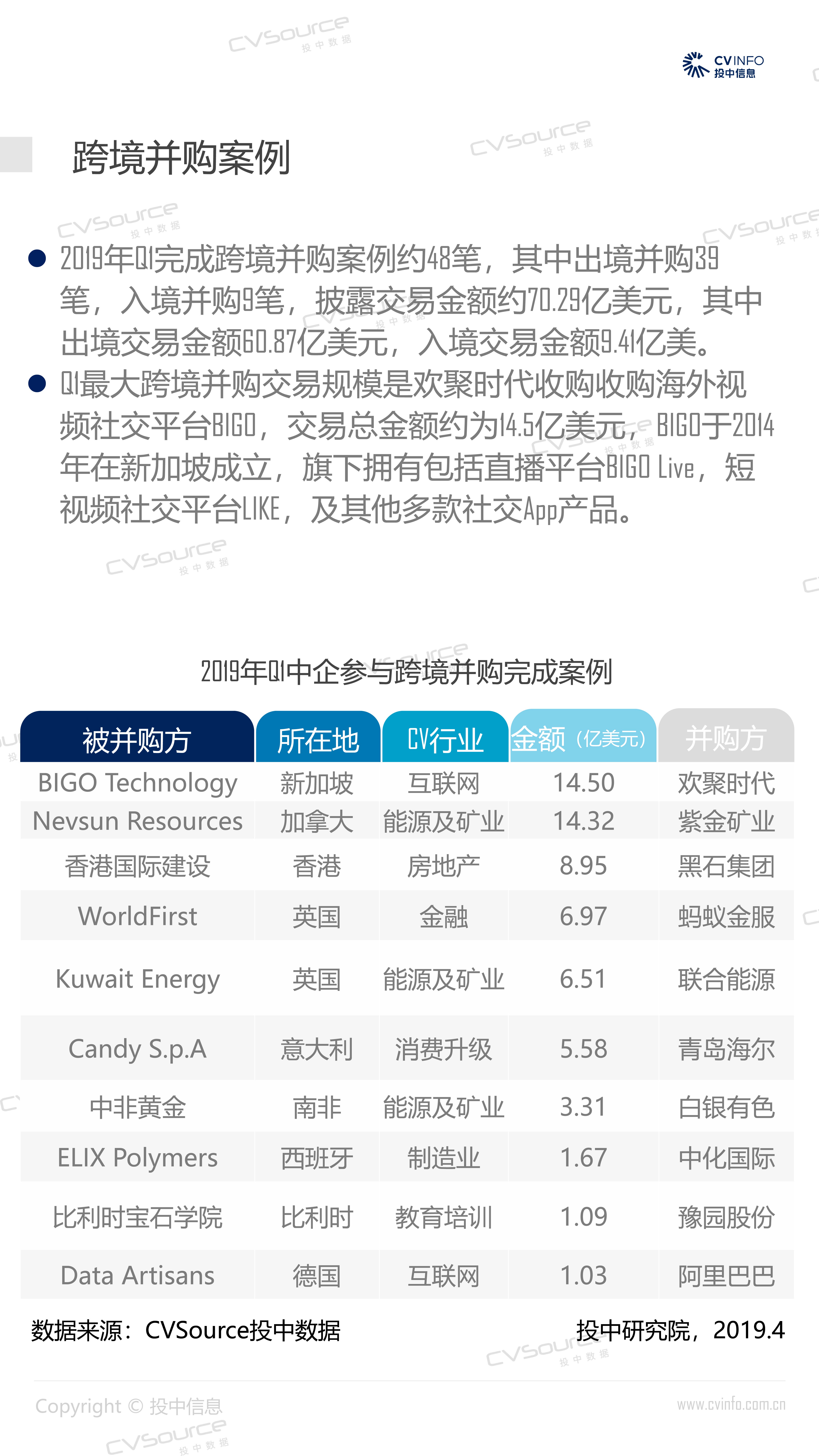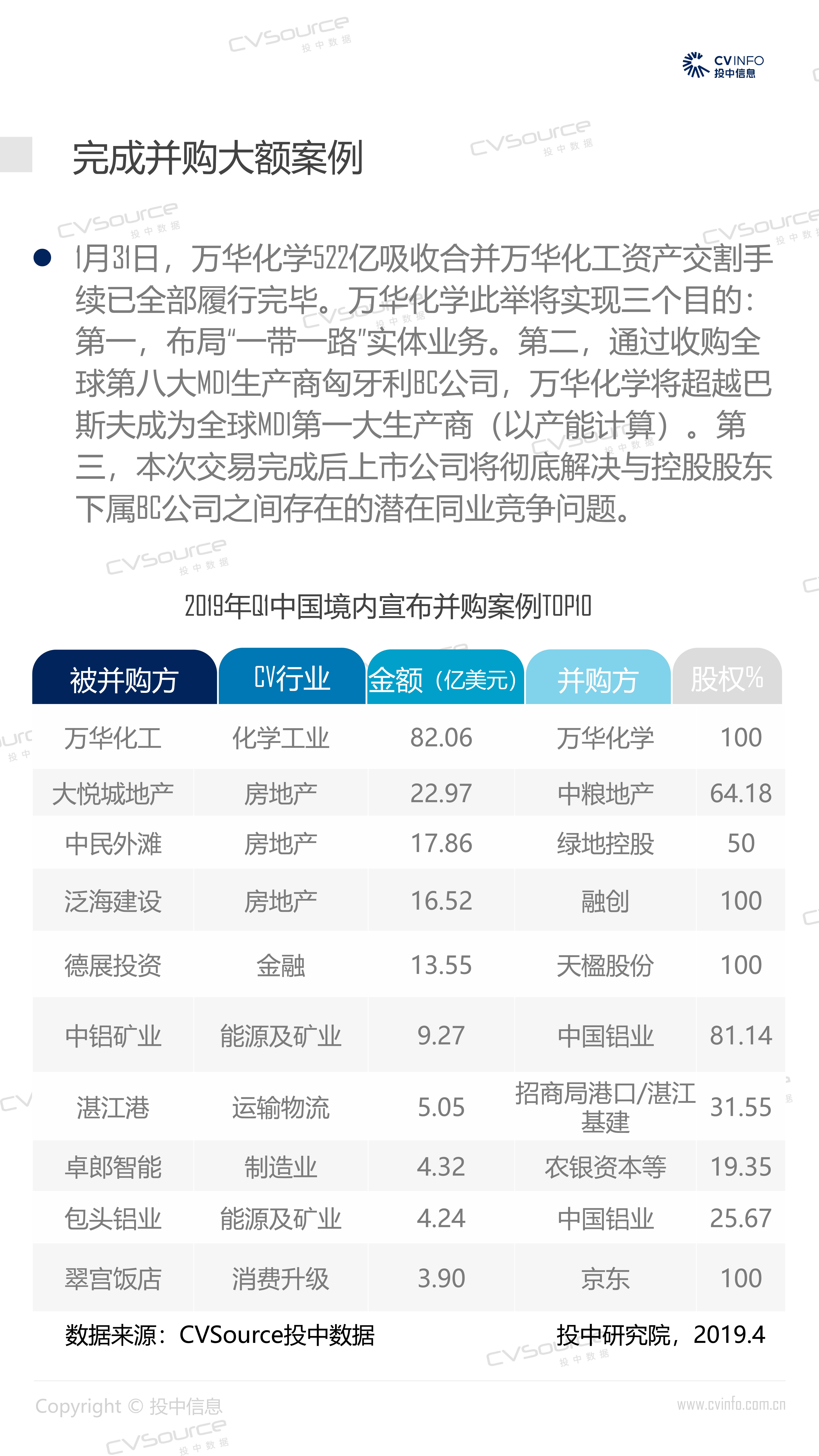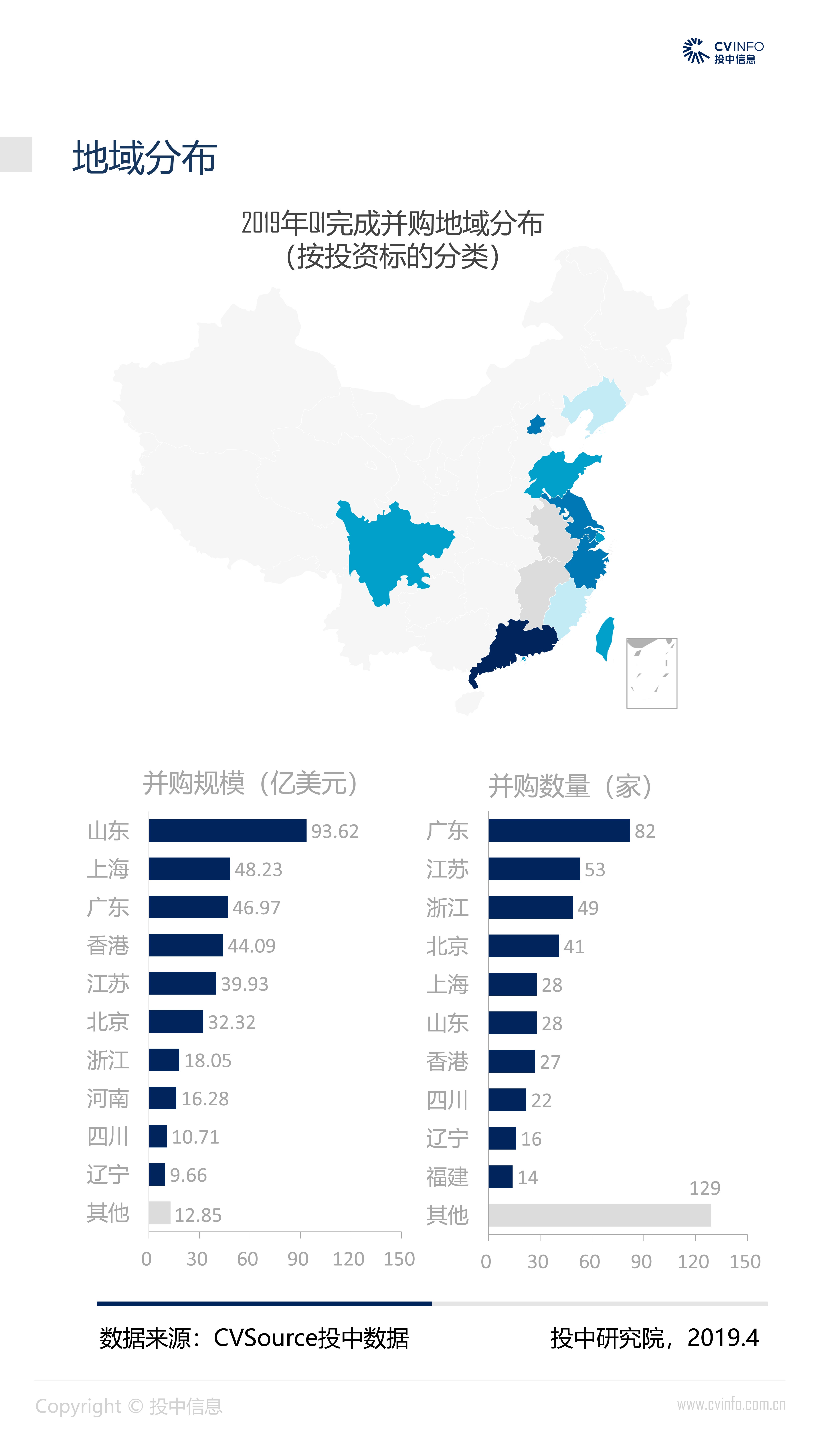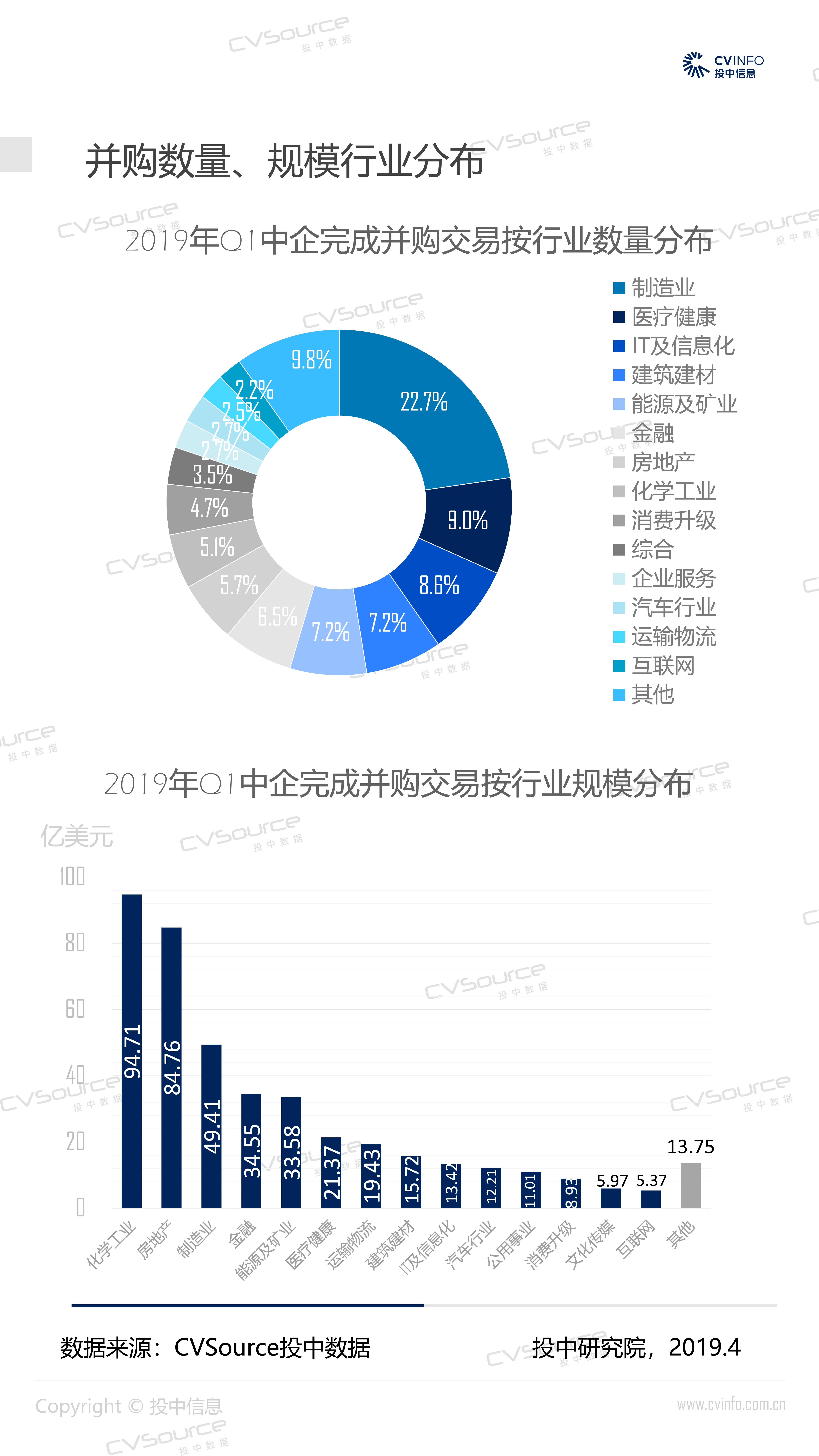 2019Q1,中企并购市场投资意向发展平缓,交易数量缓慢下降,整体交易规模也处于近一年较低水平,3月,私募基金经历过投资观望期,投资规模呈现上扬趋势。