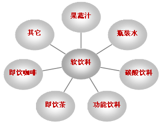 饮料市场可以分为软饮料、酒精饮料、固体饮料三类,本文中所定义的软饮料主要分为果蔬汁、瓶装水、碳酸饮料、功能饮料、即饮茶饮料、即饮咖啡饮料六大类(见图2)。