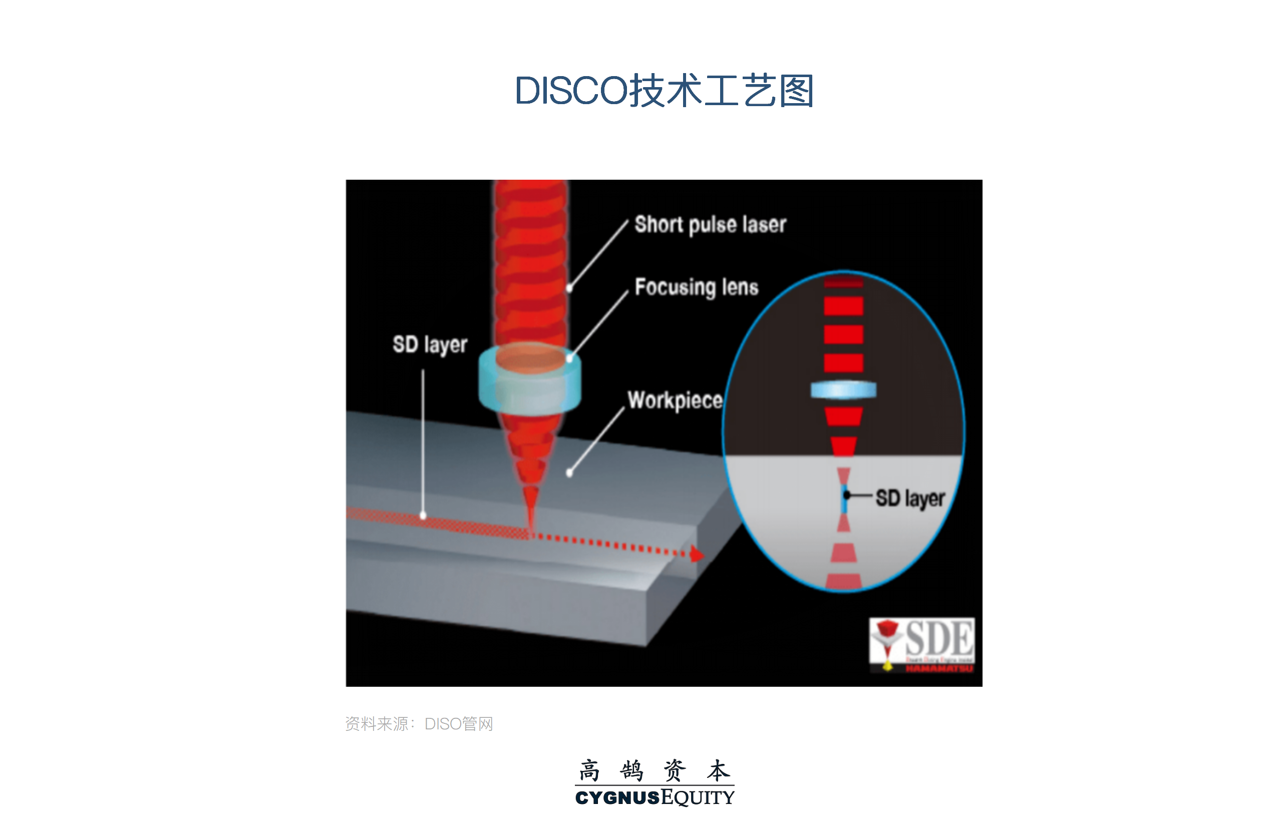 而激光剥离技术及激光冷切割技术作为更领先的技术则主要应用于海外。例如日本DISCO公司就是采用激光剥离技术。激光剥离技术是将激光垂直照射碳化硅晶锭,并聚焦到碳化硅晶锭内部一定深度,使表面层改性后,从晶锭上剥离出晶片。相较于线切割技术,激光剥离技术具有以下优势: