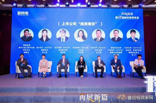 在“上市公司‘提质增效’”专场,清华五道口数字中国项目主任唐鑫龙,海兴电力(603556)副董事长李小青,莲花健康(600186)高级副总裁曹家胜,思创医惠(300078)总经理华松鸳,久其软件(002279)执行总裁肖兴喜,德乾投资总裁、华帝股份(002035)董事长特别助理董嘉鹏,永泰生物(06978.HK)副总裁、首席财务官兼董事会秘书杨宁就相关话题进行了深入探讨。