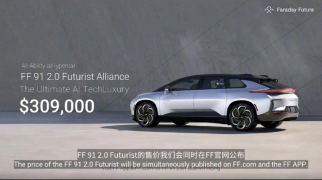 法拉第未来将FF91定位“超级尖端”市场,共有三个版本,限量版的“FF91 2.0 Futurist Alliance”售价30.9万美元(约合人民币219.5万元),稍后交付的“FF91 2.0 Futurist”售价24.9万美元(约合人民币176.9万元),标准2.0版的基础价格则仍未公布。