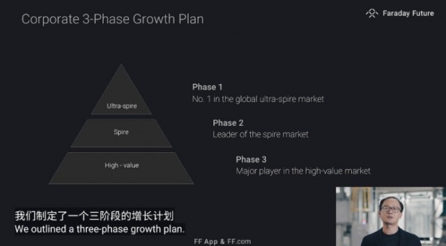 此次发布会中,FF制定了一个三阶段增长计划:第一阶段的目标是高质量、高产品力,按时交付FF91 Futurist Alliance、FF91 Futurist和FF91;第二阶段的目标是随着智能汽车销量的增长,推出未来的车型,创建移动生态,迅速增加生态收入;第三阶段目标是维持公司智能汽车收入的快速增长,同时实现包括互联网应用、软件和共享等生态收入的增长。FF在直播中表示,FF生态收入预计将在整体利润中占据越来越大的比重。