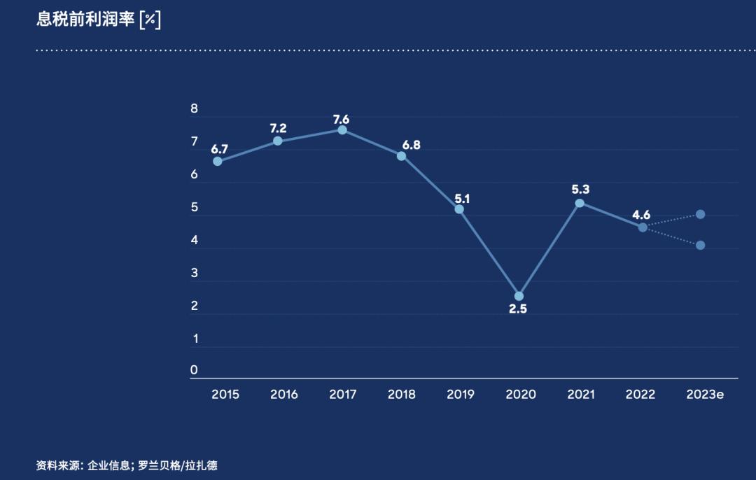 但汽车零部件的利润压缩空间也有限。咨询公司罗兰贝格的研报显示,相较疫情前,汽车零部件行业的息税前利润率已结构性下降3%,各类零部件的利润率均出现显著下滑。