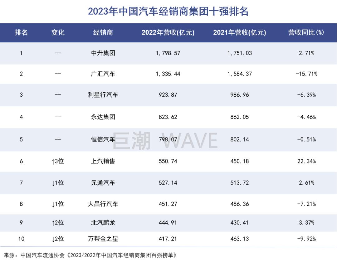 在汽车厂商直接下场干销售的情况下,中升集团虽依旧位居行业第一,但北汽鹏龙、上汽销售已经强势晋级行业前十,并成为前十名中收入增长最快的企业。