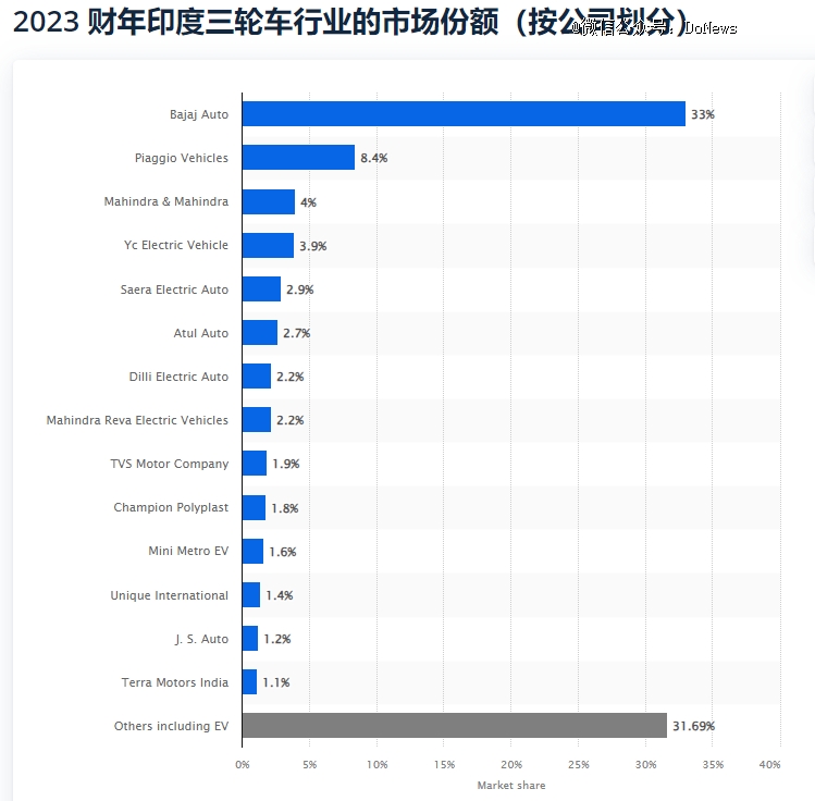 而在部分国家中,三轮车出海仍有很大机会。以印度市场为例,2023财年印度三轮车行业CR3为45.4%,暂未出现强垄断市场。细分的货运三轮车市场上,2021年财年主要销量由市场上的中小玩家所贡献。