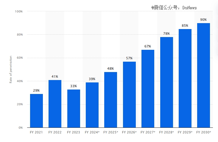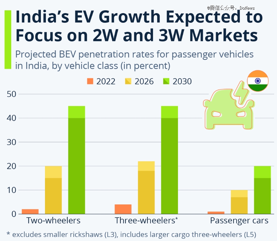 Statistic预计2030年,印度电动三轮车普及率将达到90%为2021年的3.1倍。