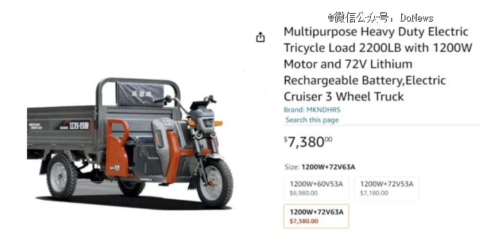 更进一步来看,若电动三轮车价格高于其他交通工具价格,这让本国消费者仍青睐其他交通工具。如在亚马逊平台上,部分国产电动三轮车海外售价高达7000美元至1万美元(约合人民币4.5万元至6万元)。