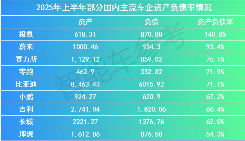 今年上半年末,蔚来的总资产为1000.46亿,总负债934.3亿,资产负债率达93.4%,较上年同期的79.4%高出14个百分点。