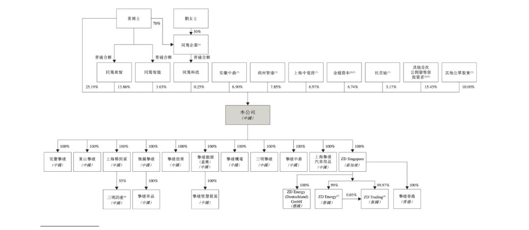 IPO后,挚达科技创始人黄志明直接持股25.19%,并通过同笃商贸、同笃智能及同笃科技(员工激励平台)分别控制13.86%、3.63%、0.25%股份。综上,黄志明等所属的控股股东集团合计控制公司约42.93%的投票权。