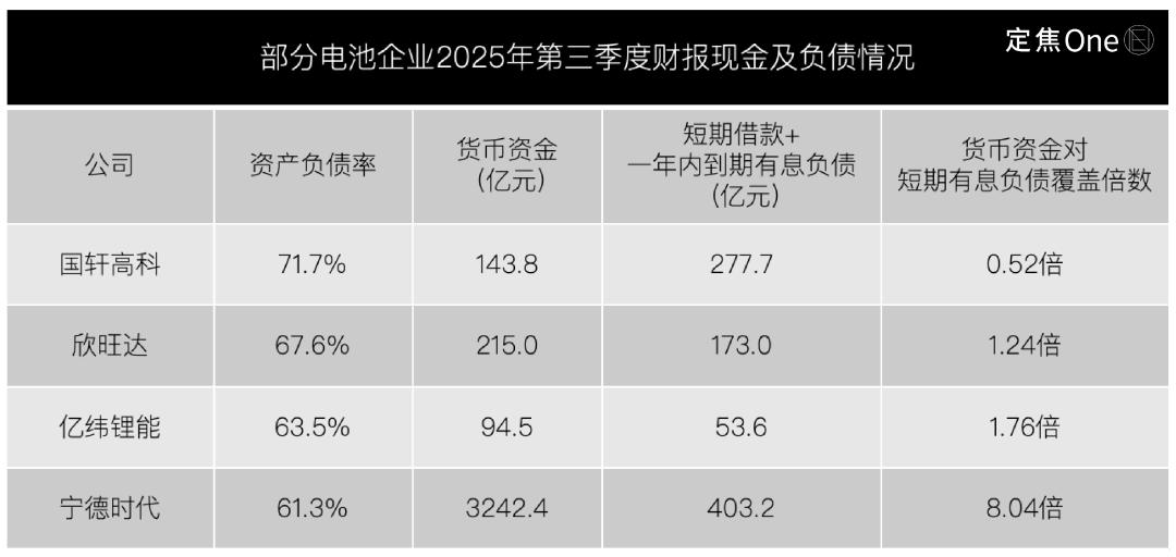 利润直接关系到现金安全。国轩高科(70%以上)、欣旺达(68%)、亿纬锂能(64%)的资产负债率均处于高位。