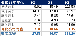 根据招股书选取贝达药业、恒瑞医药等五家可比公司来进行计算,从下表中可发现无论是根据市盈率、市净率还是市销率来进行计算,微芯生物的价格都远远高于可比公司的均值也高于任何单一维度的最大值。