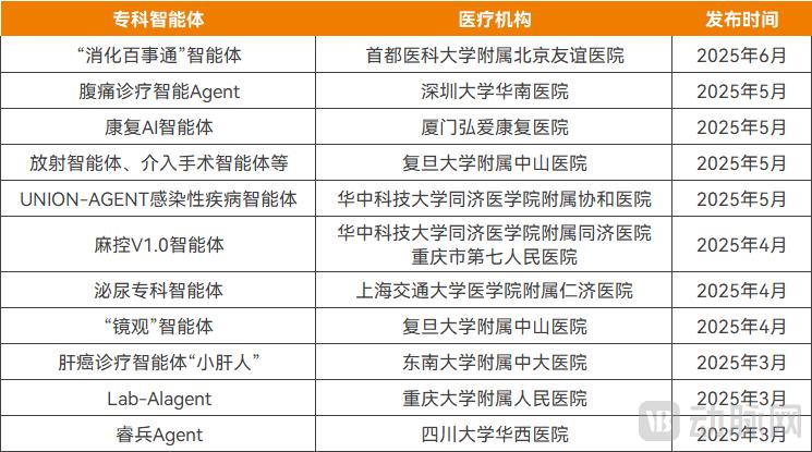 近期推出的部分专科专病智能体,资料来源:公开信息、访谈