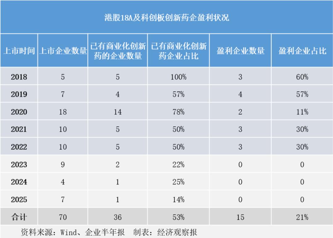 在70家港股18A与科创板创新药企业中,有55家仍在亏损,占比79%。