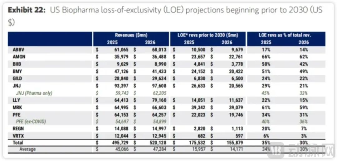 美国大型药企受专利到期影响情况,图源Morgan Stanley