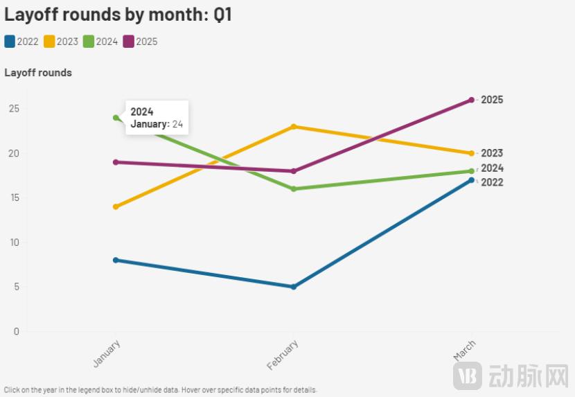 图2.2022-2025年美国生物制药行业一季度裁员情况(图源:Fierce Biotech)