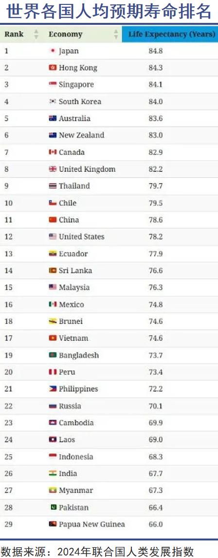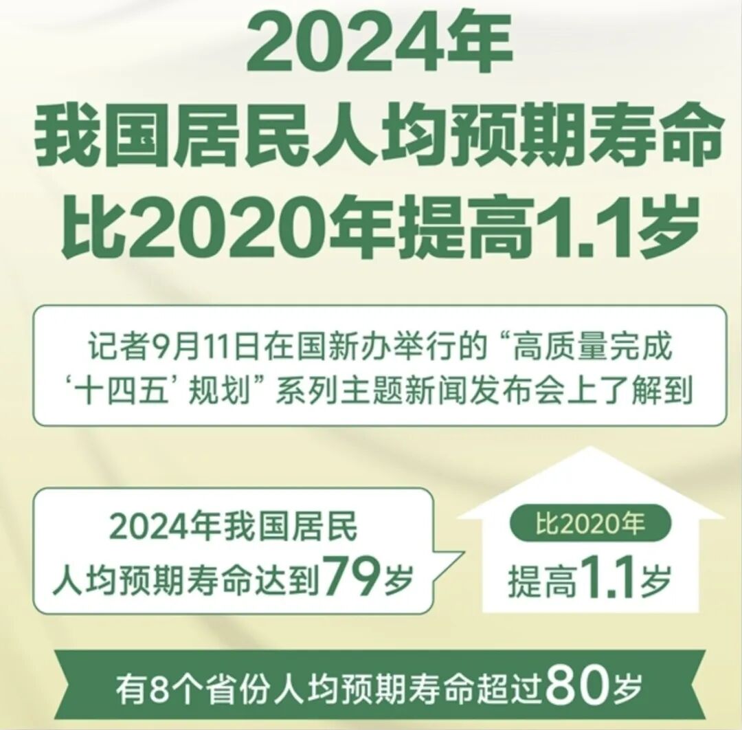 人均预期寿命是衡量一个国家健康和医疗条件的重要指标,目前日韩澳等国都已超过80岁,排在全球前列。我国居民去年预期寿命已提高到近79岁,而这一数字在建国前只有35岁。
