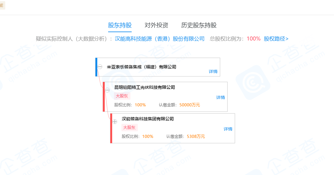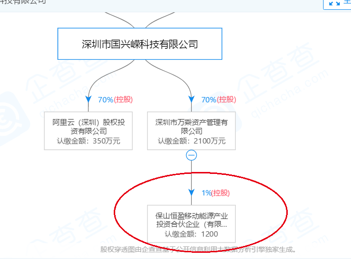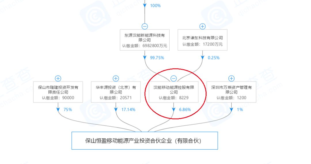 从以上信息来看,深圳国兴嵘科技有限公司真的是一家普通得不能再普通的公司,但问题是,该公司间接持股1%的保山恒盈移动能源产业投资合伙企业,又被汉能持股6%。