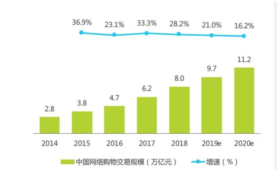 《报告》显示,2018年中国网络购物交易规模为8万亿,以天猫、京东、唯品会等为代表的传统主流电商平台用户增速已持续放缓至20%,甚至更低。