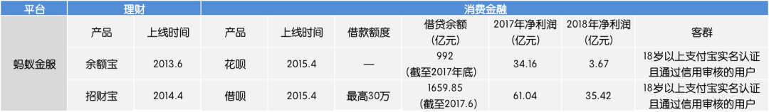 作为阿里金融触角的蚂蚁金服,理财业务主要有余额宝和招财宝,消金业务主要是花呗和借呗。