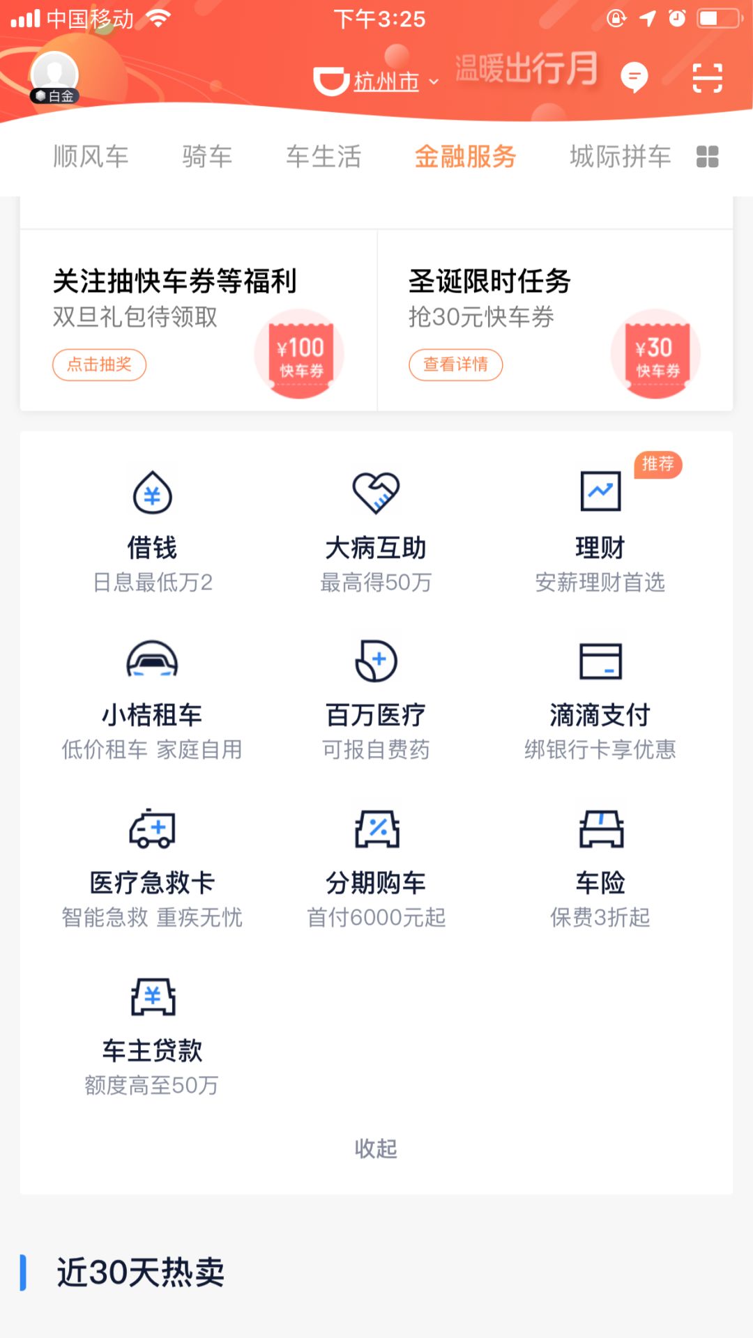 在滴滴APP上的金融服务中,借钱、理财、支付、分期购物、车险、车主贷款等一一呈现。