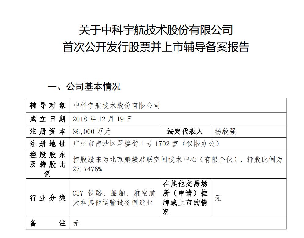 8月12日,据中国证监会官网信息披露,中科宇航技术股份有限公司(以下简称“中科宇航”)在广东证监局办理辅导备案登记,辅导机构为国泰海通证券。