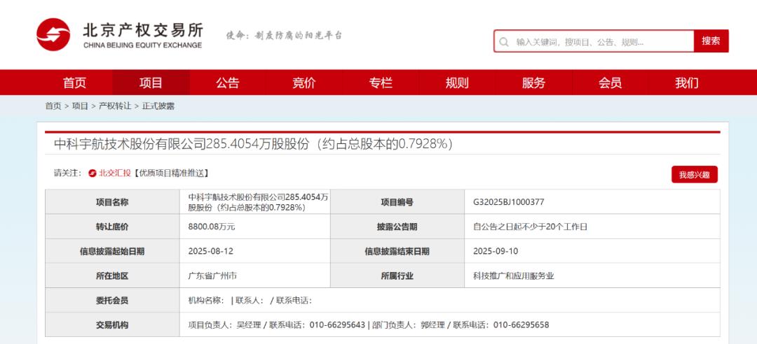 值得注意的是,8月12日北京产权交易所公示了中科宇航285.4054万股股份的转让项目。该项目转让底价为8800.08万元,占比约0.7928%,以此估算,中科宇航的估值约111亿元。