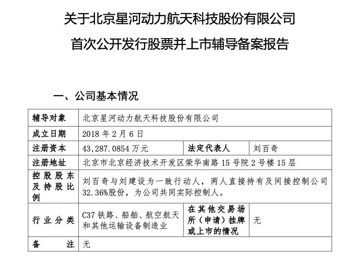 10月22日,北京星河动力航天科技股份有限公司(简称:星河动力)正式启动上市辅导,由华泰联合证券有限责任公司担任辅导机构。