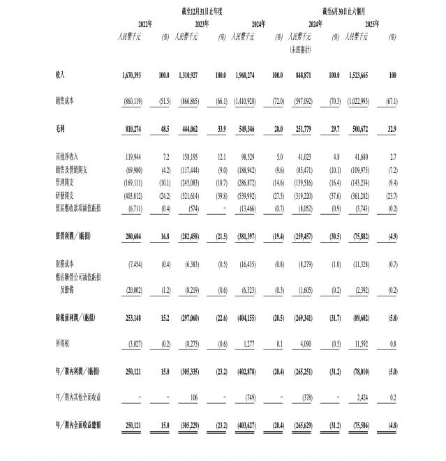 2022-2024年及今年上半年,纳芯微的收入分别约16.70亿、13.11亿、19.60亿、15.24亿元;净利润分别约为2.50亿、-3.05亿、-4.03亿、-7801.0万元。