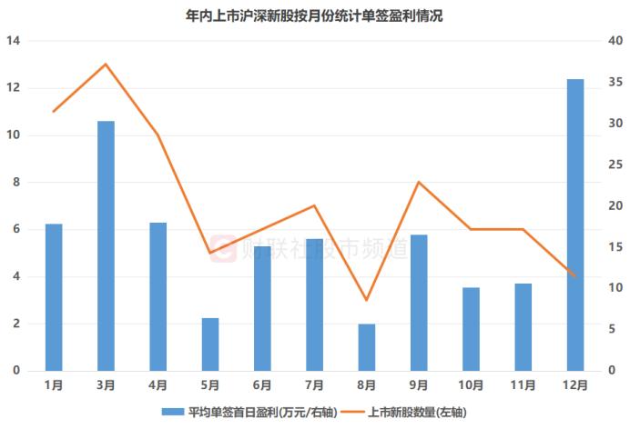 注:年内上市沪深新股按月份统计单签盈利情况(截至12月16日收盘)