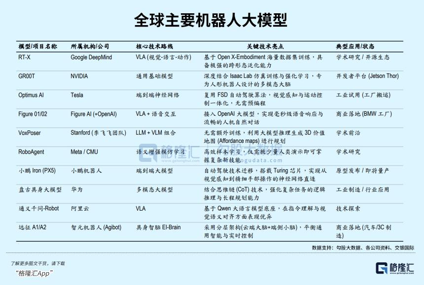 目前,全球范围内已涌现出一批极具代表性的具身智能大模型。