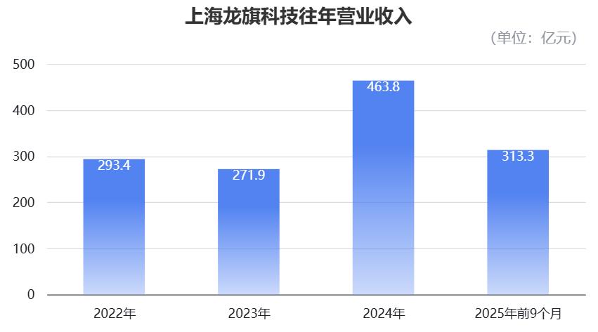 2022年~2024年,公司营业收入分别为293.4亿元、271.9亿元和463.8亿元。