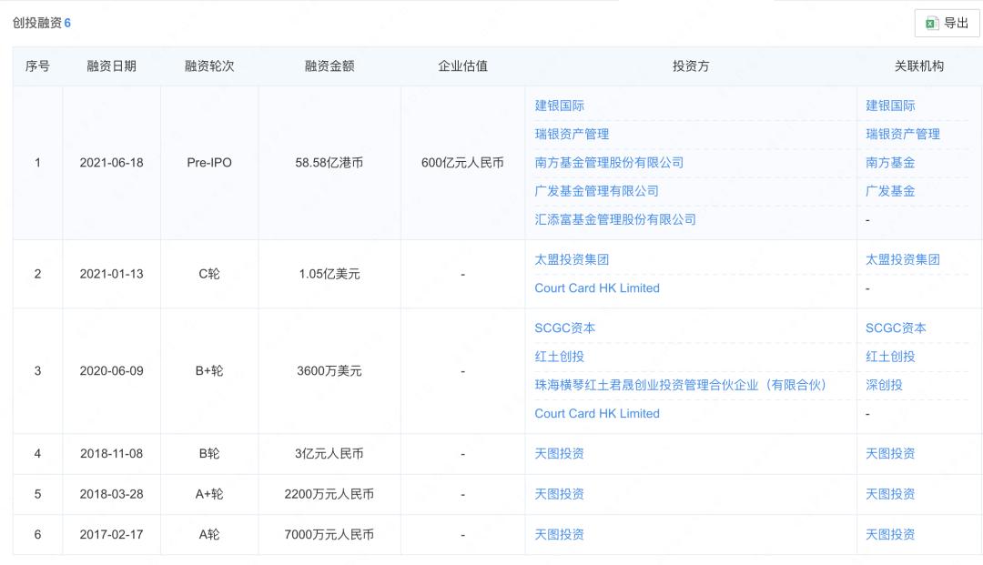 而比茶颜悦色晚2年成立的奈雪的茶,其在抢跑上市之前,也经历了6轮融资,包括2017年、2018年天图投资参与A轮、A+轮和B轮融资,累计投入的3.92亿元人民币;2020年由SCGC资本、红土创投深创投等机构投资的3600万美元B+轮融资;2021年太盟投资集团的1亿美元C轮融资,以及上市前夕,多家机构参与的总额达58.58亿港币的Pre-IPO融资。