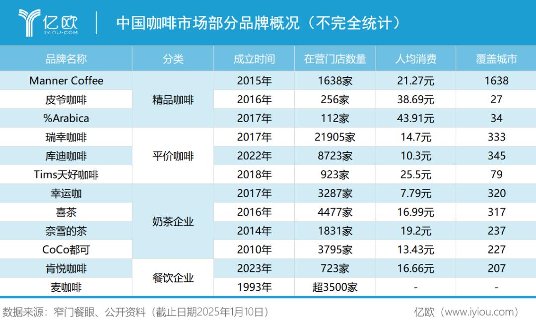 亿欧根据公开资料整理了中国咖啡市场部分品牌概况:
