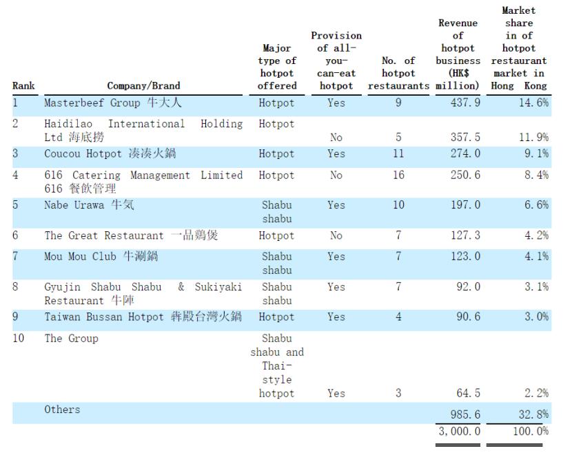 03 2024财年约占香港特色火锅店市场2.2%的份额,不及牛大人、海底捞