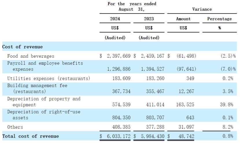 得益于取消防疫措施后,餐厅恢复正常营业,顾客需求增加,以及食品销售价格上调等影响,2024财年Happy City的收入增长至829.51万美元,实现净利润约131.97万美元,得以扭亏为盈。