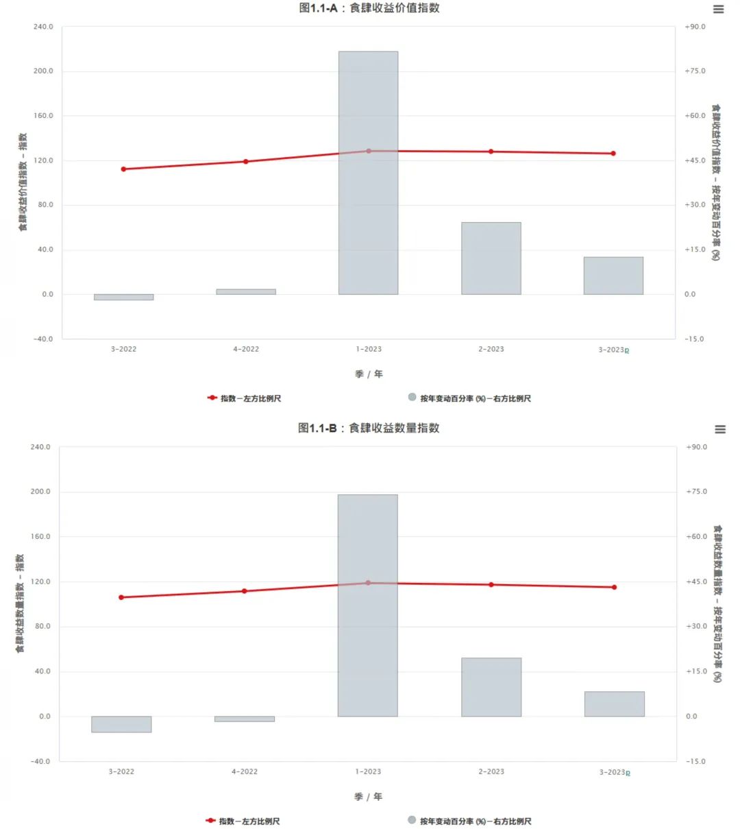 香港统计处数据显示,彼时香港食肆收益价值、数量指数均呈现出明显的上升趋势。