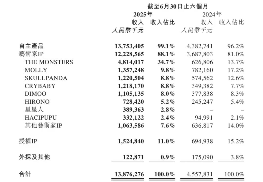 具体来看,LABUBU所在的THE MONSTERS系列,在2025年上半年营收高达48.1亿元,占泡泡玛特总营收的近三分之一。