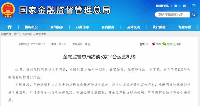 3月13日的约谈是自2025年10月助贷新规正式实施后,监管部门首次对助贷平台进行集中约谈,约谈对象为分期乐等5家行业知名平台,标志着监管重心从持牌金融机构延伸至整个互联网助贷业务链条。