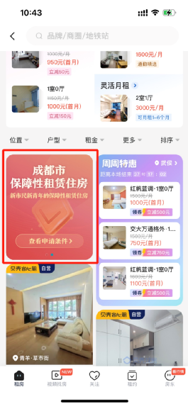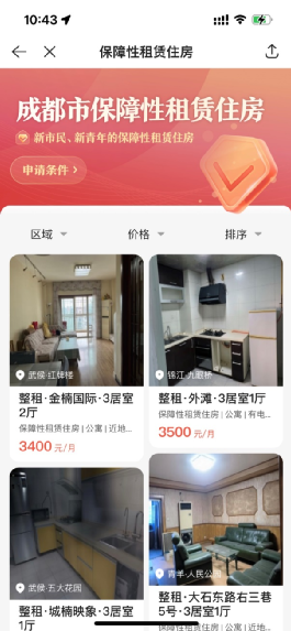 图:贝壳APP面向成都地区上线的保障性租赁住房频道