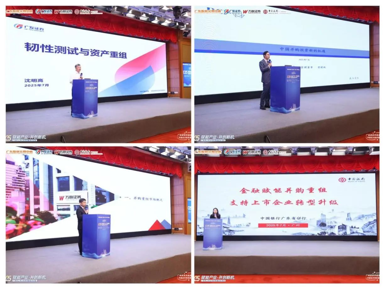 活动现场通过数字人对“并购重组十条”政策进行了解读,广发证券全球首席经济学家、产业研究院院长沈明高对“韧性测试与资产重组”展开主旨演讲,从动能转换提速、科技周期向上方面研判当前并购重组的机遇,同时对国际市场上市公司在并购重组方面的资金使用、市场反应、不同类型的并购交易成功率等进行分析;德弘资本投后管理董事曾健纯进行“中国并购投资新的机遇”主题分享,从尽调估值、交易结构、并购贷款、投后管理能力等方面分享了并购投资的关键要素;万联证券研究所负责人、宏观首席分析师徐飞介绍万联证券发挥市属国有券商优势,为企业并购重组提供基金支持和专业赋能,服务广州上市公司高质量发展;中国银行广东省分行公司金融与投资银行部副总经理林莹莹介绍中国银行以并购贷款为核心产品,发挥中银集团海内外一体化与多元化优势,为企业提供“中银并购金融+”综合金融服务。