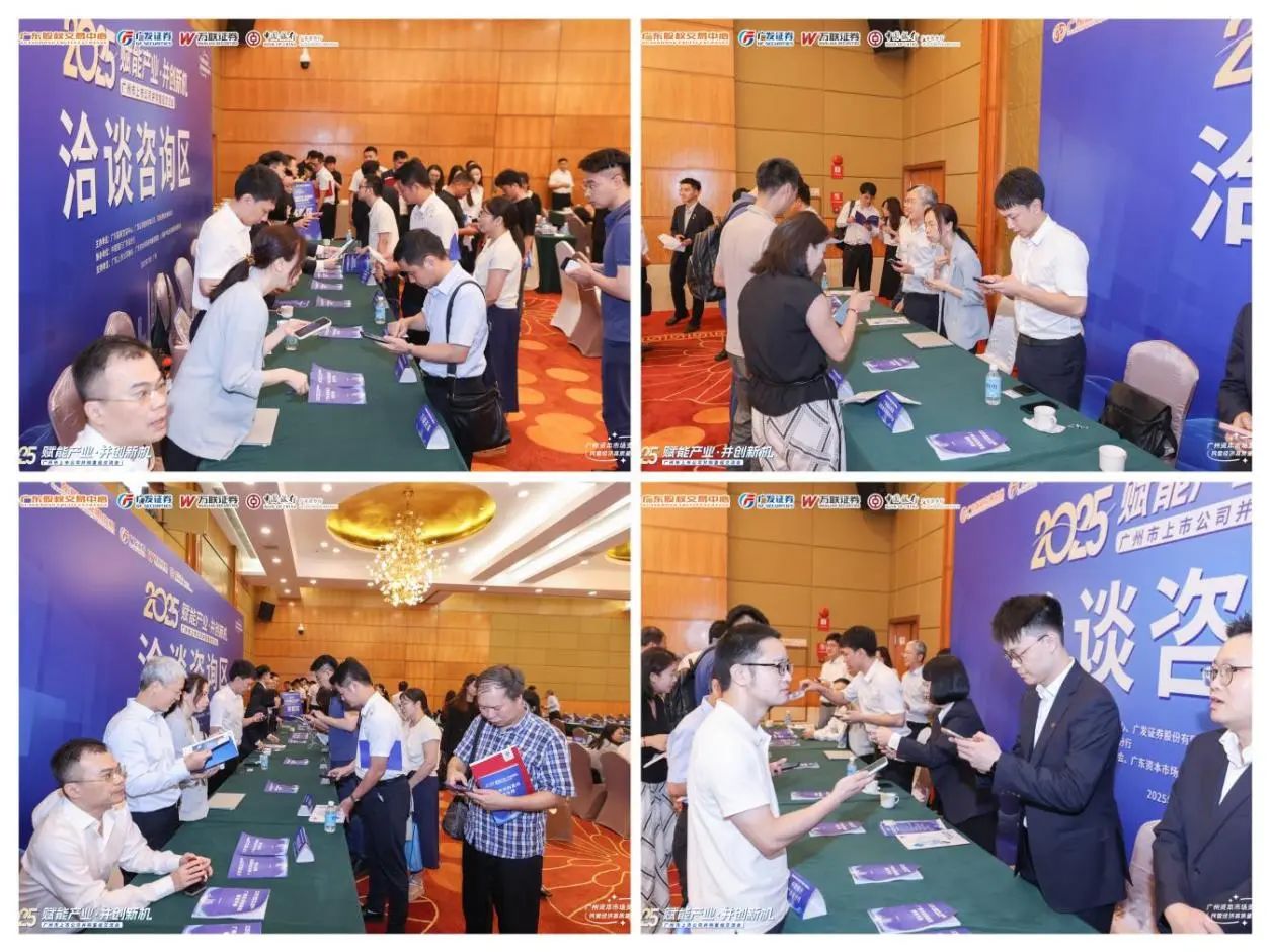 本次活动专门设置了咨询洽谈区,现场安排专人为参会企业和机构解答咨询,搭建对接交流平台。此外,还编制了《广州市并购重组服务手册》,内容包含证券公司综合服务、并购贷款、并购基金、上市并购平台等并购重组服务,70个潜在并购项目及部分并购重组案例。