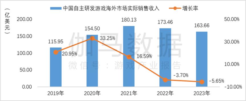 具体到出海收入上,2023年,中国自主研发游戏在海外市场的实际销售收入为163.66亿美元,同比下降5.65%,继2022年后再次出现下降。