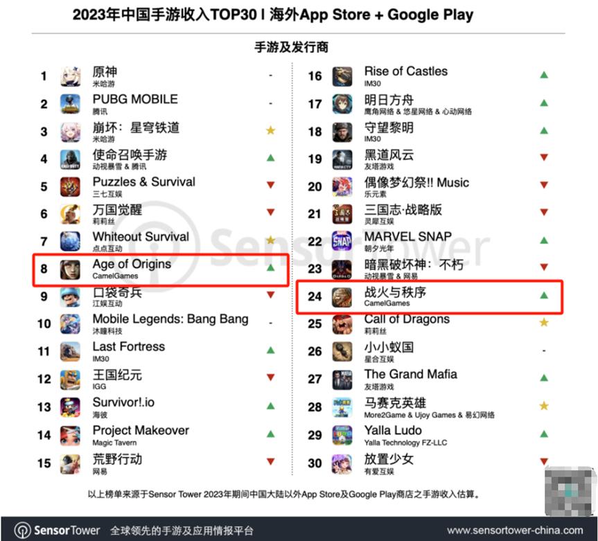 2016年、2018年,公司重点手游产品《War and Order》(战火与秩序)、《Age of Origins》(旭日之城)相继全球上线,2022年10月这两款游戏的合计累计流水就突破了百亿大关,2023年依旧是国产游戏出海的主力军。