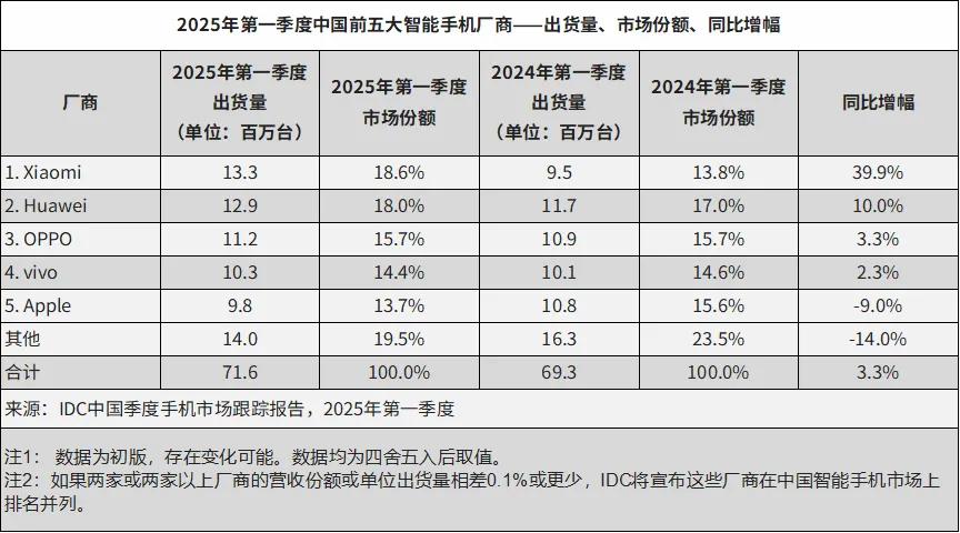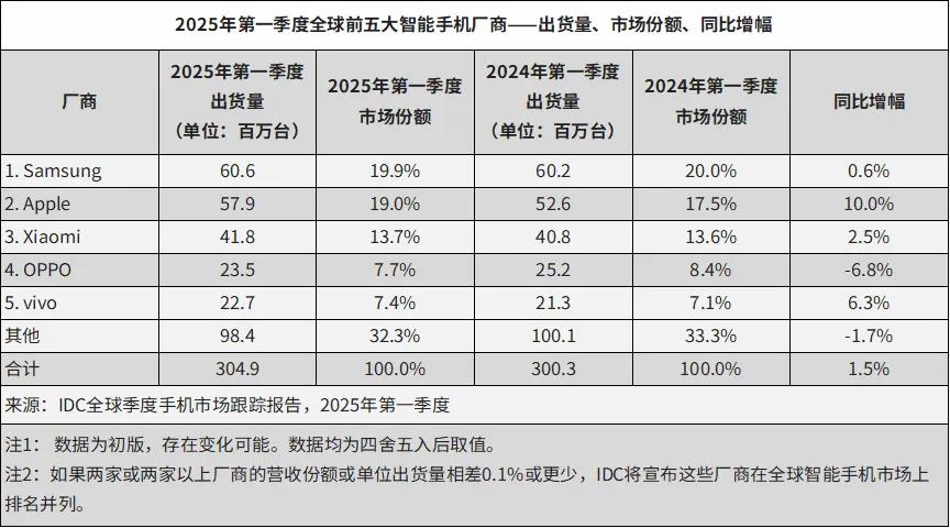 最近,2025年第一季度智能手机的出货量、销量排名陆续放榜。