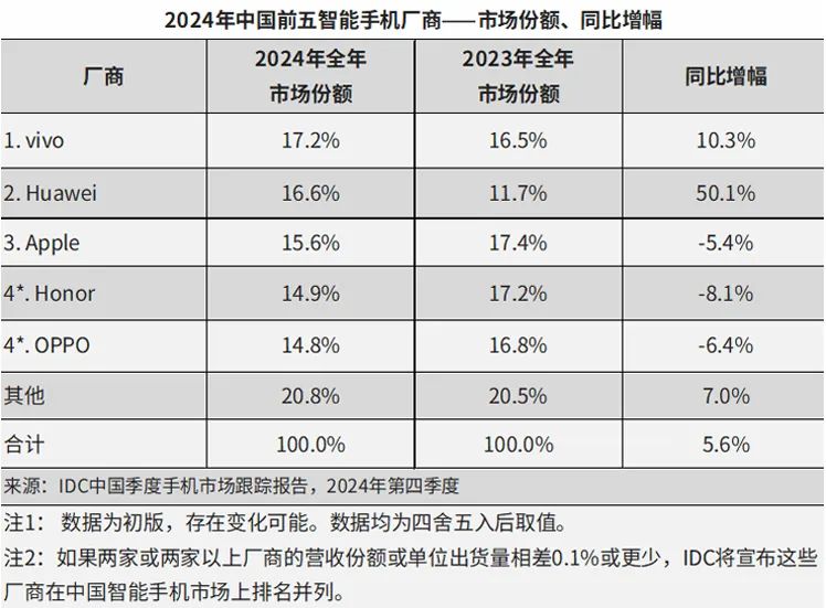 智能手机行业已连续多年徘徊不前。IDC数据显示,2022-2024年,中国智能手机市场出货量分别为2.86亿台、2.71亿台和2.86亿台,同比增速分别为-13.2%、-5.0%和+5.6%。