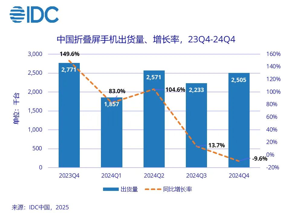 但遗憾的是,大部分创新性尝试囿于小众定位,未能打开想象空间。比如,2022-2024年,中国折叠屏手机出货量分别为330万、700.7万和917万台(IDC数据)。由于基数小,同比增速不俗,但对比智能手机大盘年近3亿台的出货量,规模十分有限。